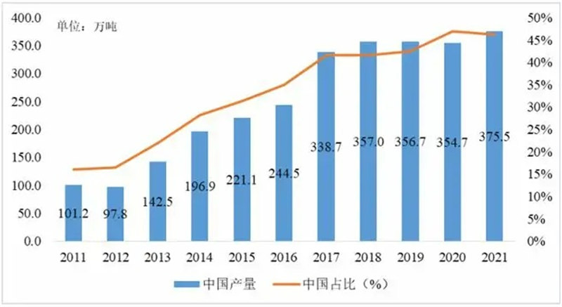 In recent years, with the rapid development of the industrial alumina industry, the domestic supply of bauxite has become tight, and the production cost of industrial alumina has increased. More and more enterprises are entering the fine alumina industry, and the production of fine alumina in China is rapidly expanding. According to statistics, China's fine alumina production reached 3.755 million tons in 2021, accounting for The proportion of fine alumina production has been increasing year by year, reaching 46.26% by 2021. China has become The production of fine alumina is relatively high.