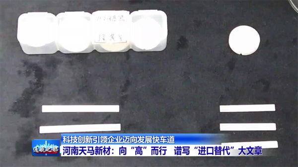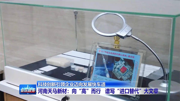 Ma Shuyun, Chairman and General Manager of Henan Tianma New Materials Co., Ltd.: We developed this product also because of industry needs. It belongs to electronic ceramic chips, which are applied to the substrate of chips. It is an electronic ceramic chip substrate produced by casting method and used on the chips of Shenzhou V and VI emitters.