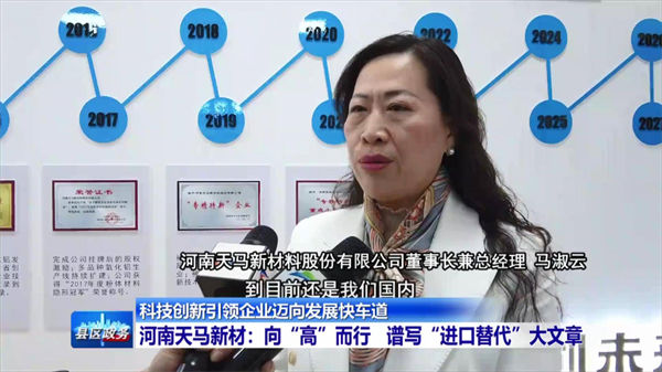 Ma Shuyun, Chairman and General Manager of Henan Tianma New Materials Co., Ltd.: So far, it is still in our domestic market To supply and replace imports, we received support from the National Innovation Fund for this product in 2010 and in 2021 The single item Demonstration enterprise. In the past 24 years, Tianma has obtained 9 inventions, We have also obtained 37 utility models.